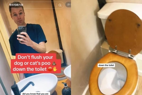 ▲獸醫呼籲飼主不要將寵物排泄物沖進馬桶裡。(圖/翻攝自TikTok/ben.the.vet)