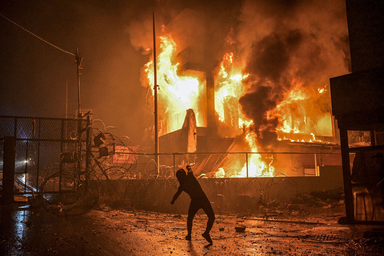▲黎巴嫩示威群眾朝美國大使館丟擲汽油彈。(圖/達志影像/美聯社)