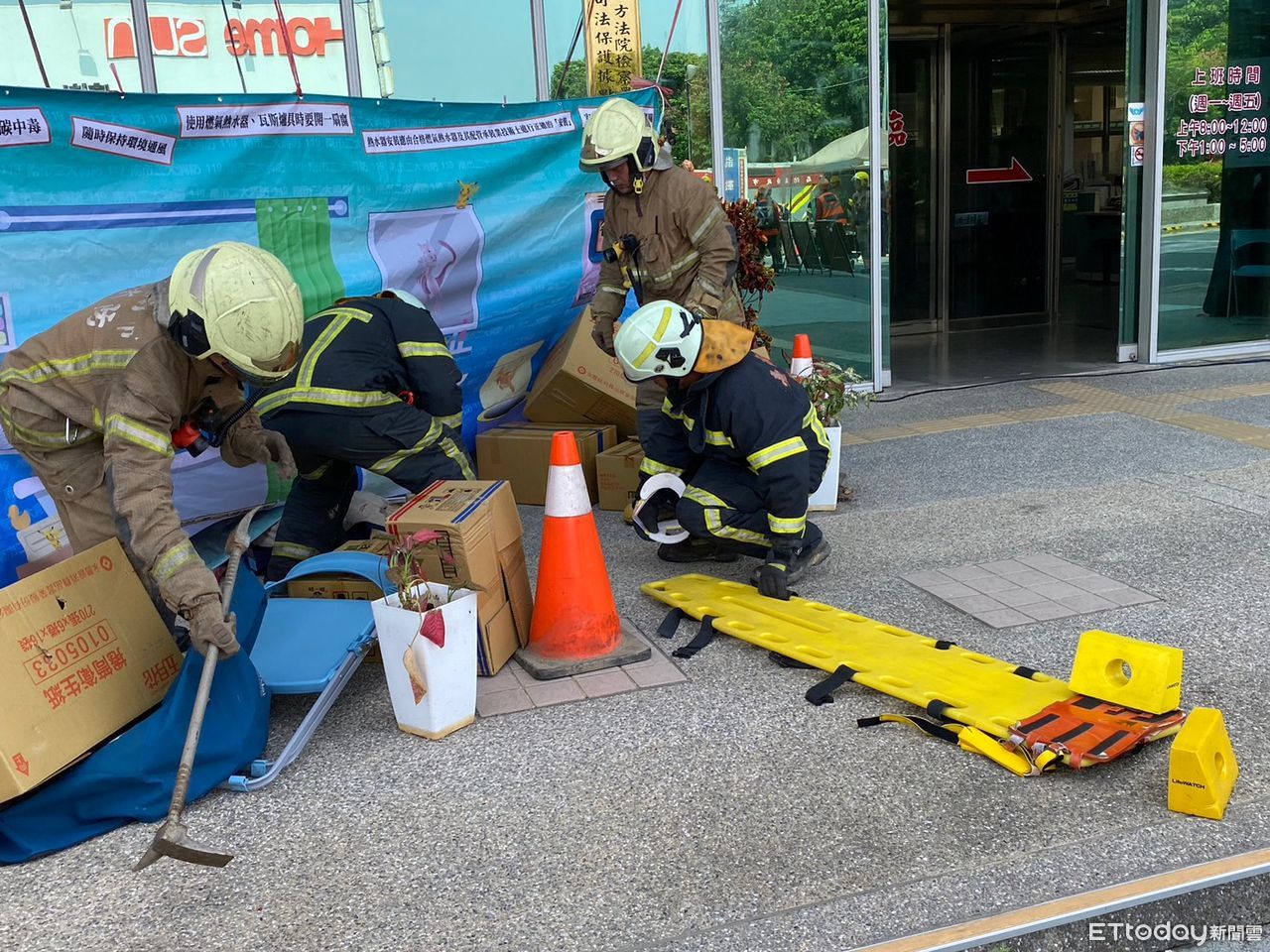▲台南市麻豆區公所,結合消防局第二救災救護大隊、麻豆區衛生所等單位,辦理2023年度地震防災教育暨初期緊急避難應變示範演練。(圖/記者林東良翻攝,下同)