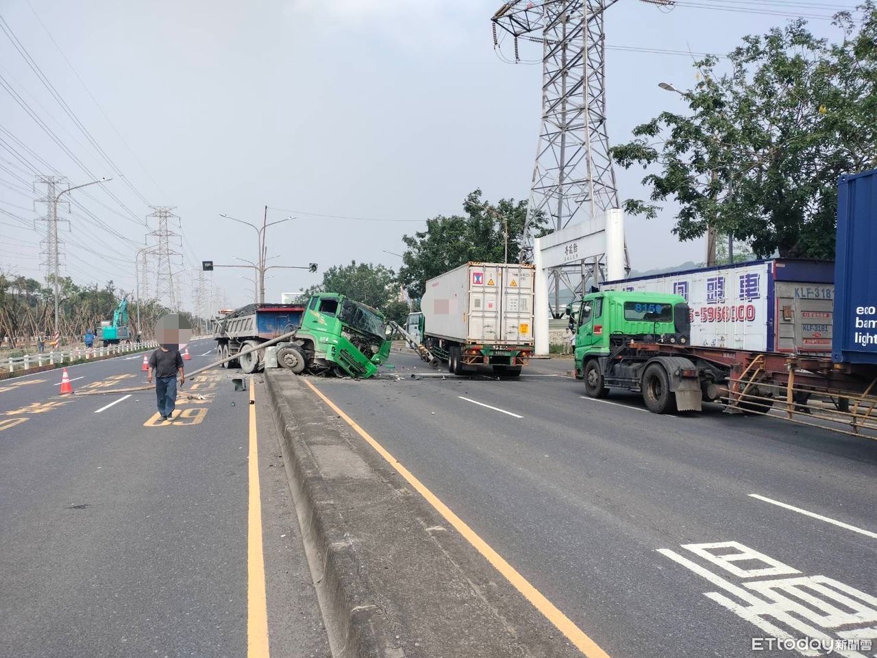 高雄市小港區沿海三路與山邊路口今(19)日下午2點發生重大車禍,一輛砂石車疑似爆胎失控,撞擊中間分隔島號誌燈桿,燈桿倒塌波及對向北上的貨櫃車。事故導致曳引車車頭毀損,警方於現場協助指揮交通並通知拖吊車拖吊。
