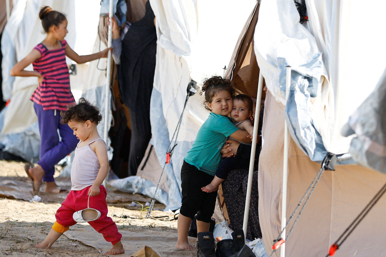 ▲巴勒斯坦人在加薩南部城市汗尤尼斯(Khan Younis)的帳篷營地避難。(圖/路透,下同)