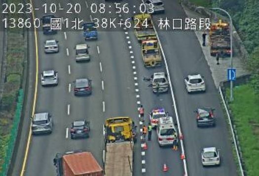 國道1號南向38.3K、新北林口段今(20日)上午8時49分傳出事故,現場1輛自小客與1部小貨車發生追撞,事故佔用外線車道,目前相關單位已到場處理,事故尚未排除,籲請用路人小心慢行。