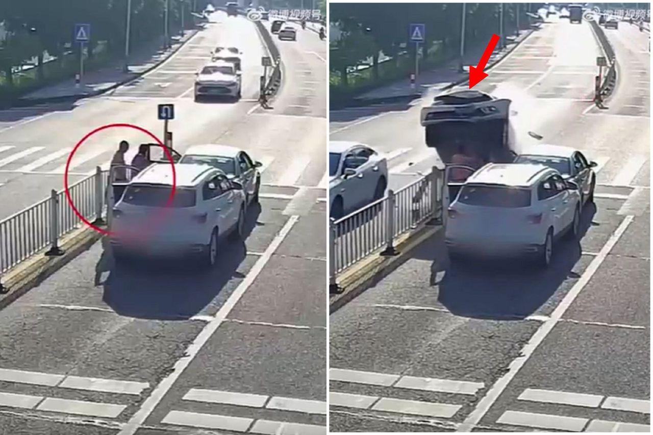大陸「微博視頻號」近日流出一段影片,引發許多網友議論紛紛,一對男女開車與另一輛車發生擦撞的輕微車禍,雙方皆下車查看,但沒想到隨後有一輛對向來車,竟然撞上護欄,整輛車飛起並壓死這對男女,造成更嚴重的車禍。