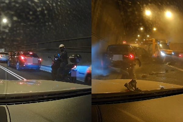 宜蘭新澳隧道24日發生17車連環撞,一共造成1死11人輕重傷,肇事的蔣姓男子駕駛砂石車,毫無剎車向前衝撞,才釀成這起慘劇。事後隧道內的撞擊畫面也隨之曝光,可以看見有名紅牌重機騎士首當其衝,畫面相當驚悚。