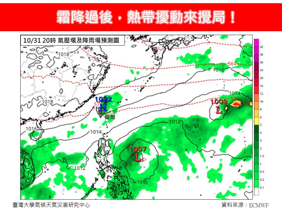 ▲霜降過後,熱帶擾動來攪局。(圖/翻攝臉書/林老師氣象站)