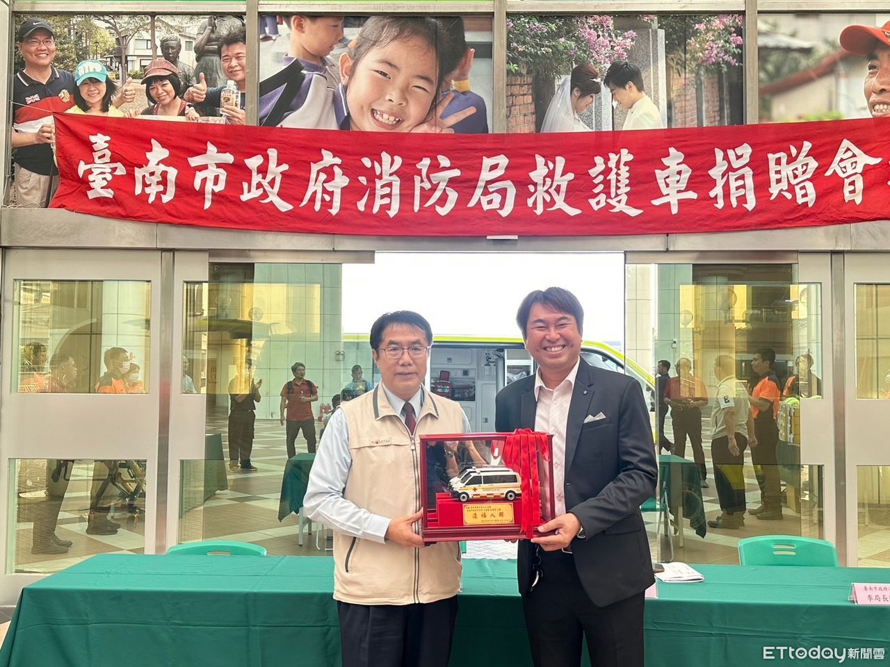 台南市知名建設佐岸開發有限公司董事長陳泓名,因事業有成,慷慨捐贈1輛救護車予台南市消防局,並將其交由安和消防隊使用,25日由市長黃偉哲及消防局長李明峯受贈,並回贈感謝獎狀,以表彰企業善行和慈善舉措。