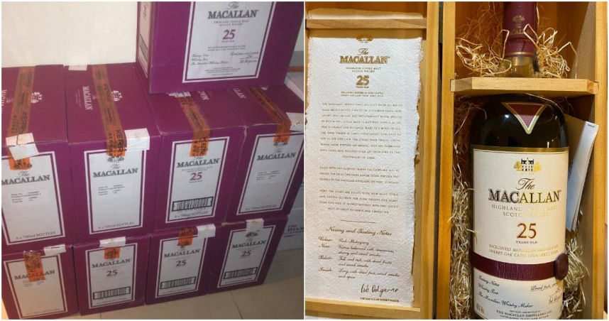 留言區有內行人指出這些酒應該是「麥卡倫25年雪莉桶單一純麥威士忌700ml」,參考價高達8萬元;若依原PO庫存照片推算,9大箱總計54瓶,換算下來,市價竟高達432萬。不過酒的種類和收購價是否為真,還是得由專家判定。