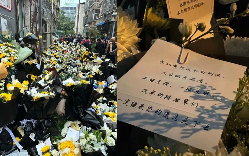 中國大陸國務院前總理李克強27日心臟病發逝世,消息震驚中外。當晚,許多大陸民眾前往了他位於安徽合肥的故居獻花,且越晚人數越多,到天亮時已疊成一大片花牆,還有人送上了卡片,寫著李克強生前曾說過的「人在做,天在看」「長江黃河水不會倒流」等話語。