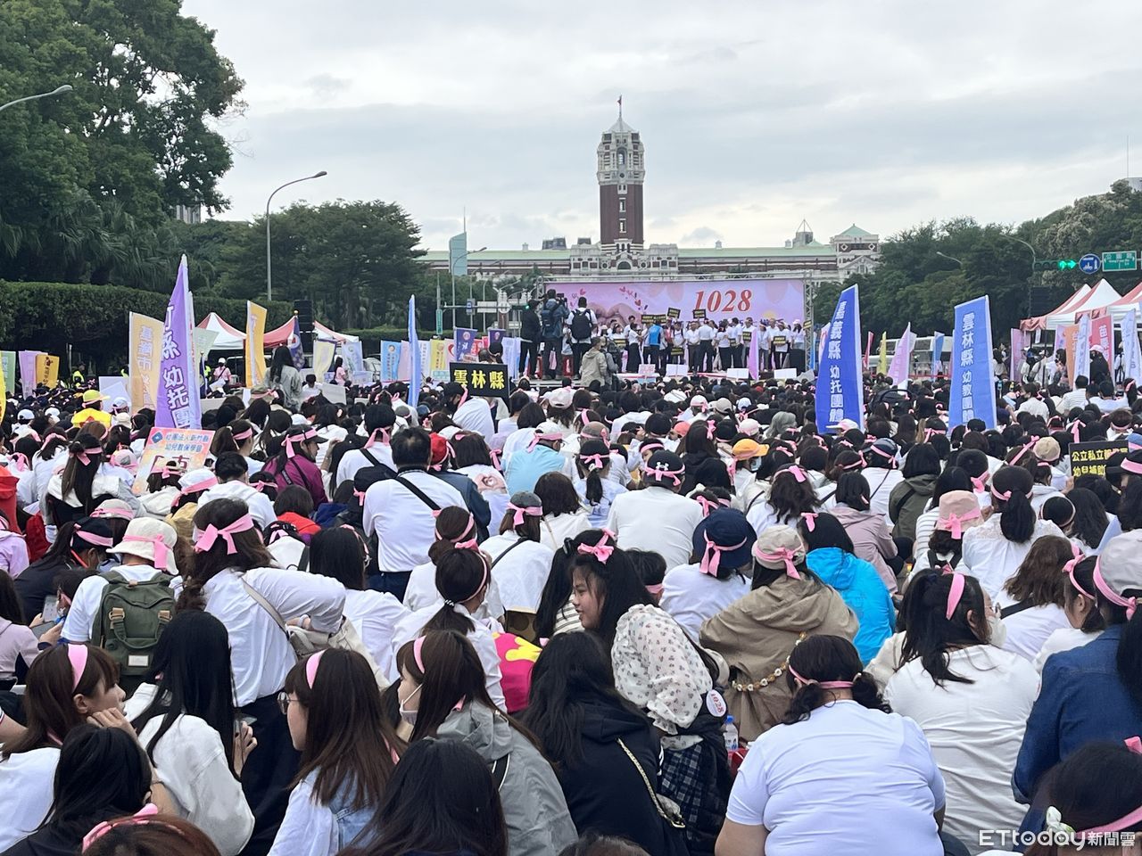 ▲近萬名幼教親師今天到凱道,提出「還給幼托人員專業尊嚴」等四大訴求。(圖/記者許敏溶攝)