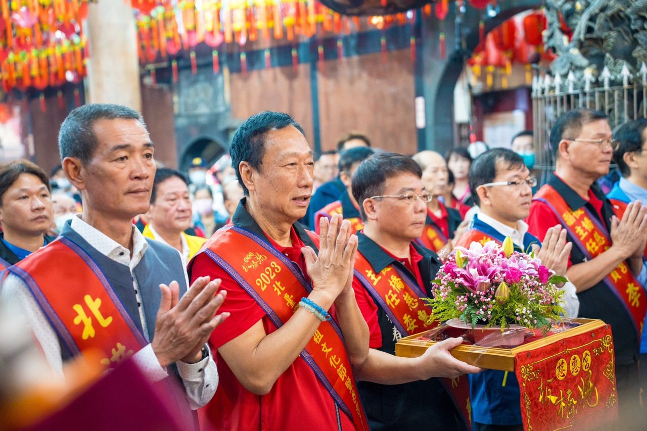 ▲郭台銘參加板橋慈惠宮「北台灣媽祖文化節」巡安會香祈福活動。
