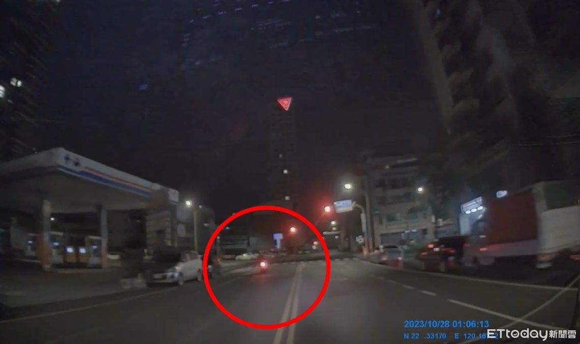 ▲台南重機騎士酒駕,竟當著警察的面鬼切跨越雙黃線逆向行駛。(圖/記者林東良翻攝)