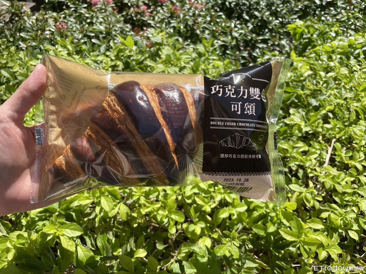 ▲7-11開賣最新5款巧克力甜點,此為「巧克力雙色大可頌」,咬下能吃到超濃的巧克力餡。(圖/記者周姈姈攝,以下皆同)