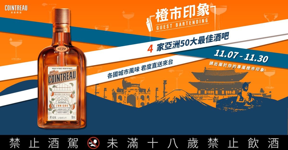 今年,君度橙酒特別邀請四組曾獲得《亞洲50大最佳酒吧》頭銜的店家代表:印尼雅加達Pantja (2023亞洲50大第29名) 的創辦人Kabir Suharan;韓國首爾Le Chamber (2023亞洲50大第25名) 的創辦人 Jae Jin (JJ)Lim;日本東京Memento Mori (2022亞洲50大第41名) 創辦人 Shuzo Nagumo;印度新德里Sidecar (2023 亞洲50大第18名) 的吧台經理 Shubham Meisnam。四組調酒師將於11月7日起至11月30日間的每周二與四,巡迴台北、台中、台南、高雄、花蓮等五座城市共八間在地酒吧舉辦橙市印象客座調酒活動,邀請消費者蒞臨品嚐融入各地異國風情特色的期間限定調酒,結合君度橙酒的完美風味,在風味以外更能感受到各城市獨具特色的文化,輕鬆實現無需出國就能直送來台異國風情的美好體驗。