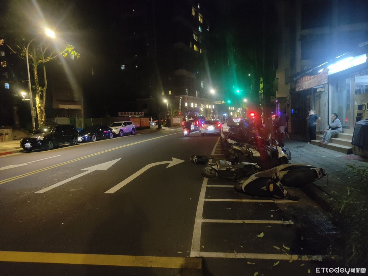 ▲文山區一租賃小客車連撞路邊13輛機車,警方到場處理。(圖/記者張君豪翻攝,下同)
