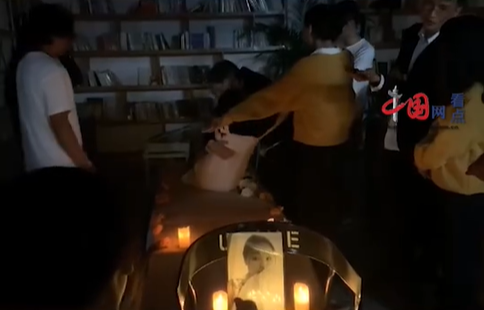 ▲朋友們一起對小汪鞠躬,致上哀悼之意。(圖/翻攝自中國看點網)