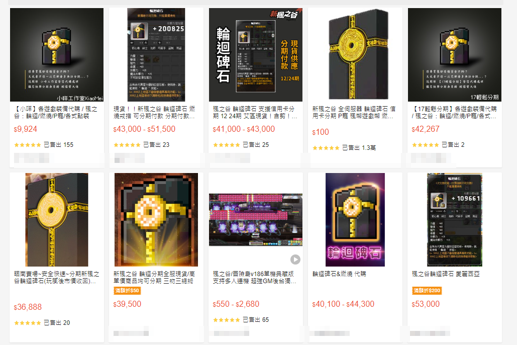 「輪迴碑石」可加快地圖怪物的重生數量與速度,等同練功速度增加2、3倍,打活動道具、金錢也同樣增加3倍,由於能夠高效率升等,價格隨之飛升,一度曾傳出買斷價高達4、5萬元,因此不少在起初以便宜金額購入的玩家,會以出租方式賺錢。