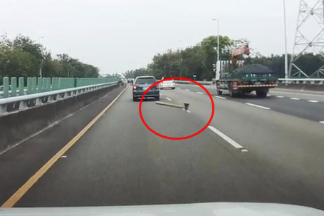 有網友在臉書「爆料公社」PO出1段影片,畫面中1部車輛行駛國道3號途中,突被一把從天而降的「斧頭」砍中,導致車體受損,國道警察第八大隊指出,該案發生在10月15日下午,警方未接獲報案,將主動追查,違規行為除會被開罰外,並涉嫌公共危險罪嫌,請用路者小心。