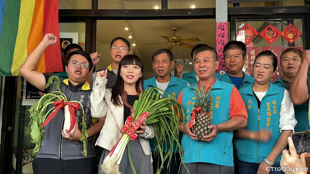 民進黨高雄市議員黃捷受到徵召,接替因婚外情風波退選的立委趙天麟,參選高雄市第六選區立委。鳳山多位里長今(31)日集結,力挺認真服務的黃捷前進國會,並送上菜頭與鳳梨等吉祥物,祝福她能有好彩頭,高票當選。