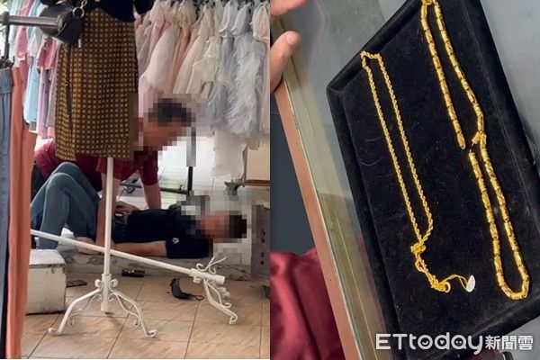 ▲17歲曾姓男子搶走金項鍊,遭銀樓老闆壓制在地。(圖/記者翁伊森攝,下同)