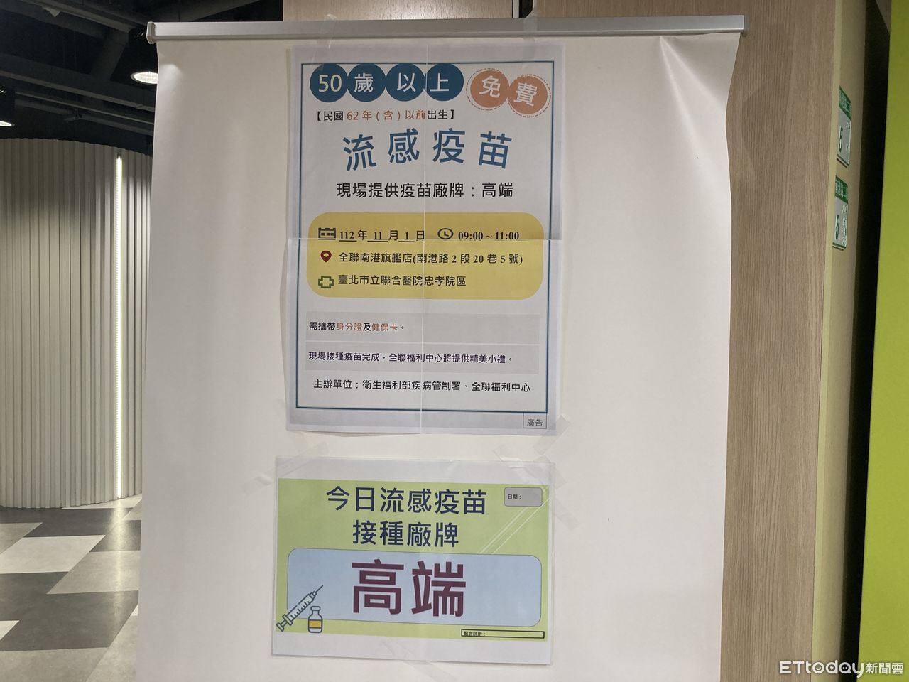 ▲今天起公費流感疫苗第二階段開打,全聯門市也提供疫苗接種,南港旗艦店今供應高端疫苗。(圖/記者洪巧藍攝)