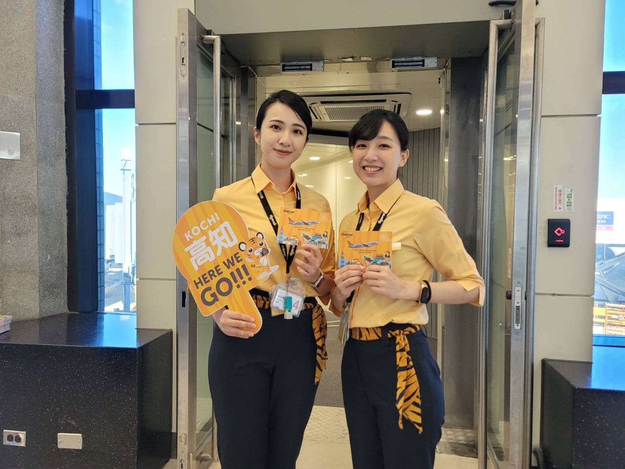 為慶祝台灣虎航首航桃園-高知,所有搭乘首航航班的旅客,皆可獲得台灣虎航精心設計的限定首航明信片乙份,另有親切的虎妞們於桃園機場的候機室和首航旅客合影紀念。