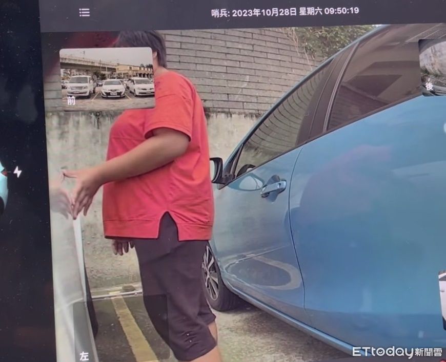 ▲▼一名紅衣女子大白天企圖拉開車門行竊,過程全被特斯拉哨兵錄下。(圖/民眾提供,下同)