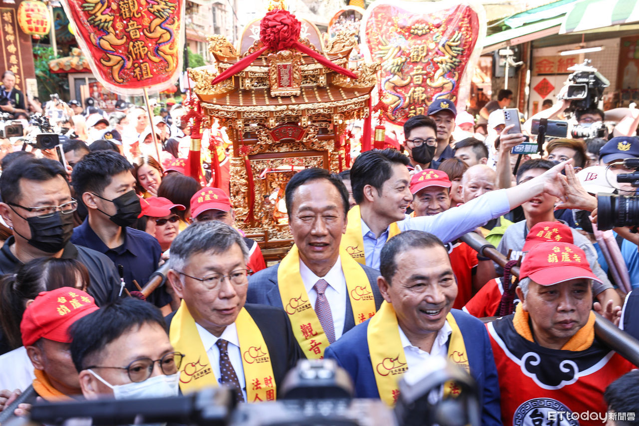 郭台銘、柯文哲、侯友宜今參加台北葫蘆寺遶境巡安活動,侯友宜於9時10分先抵達葫蘆寺,但並未提前入座。柯文哲於9時20分到達後便先入座。郭台銘則於9時30分來到現場。郭抵達時,柯立刻起身幫郭安排座位,柯說「廟方調整位子已經調整8次了」,然後郭柯兩人並肩而坐。