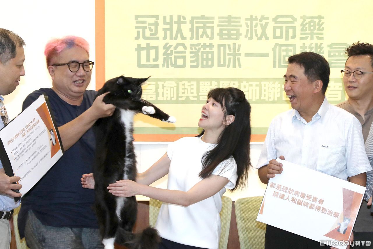 ▲高嘉瑜與獸醫師聯合記者會 冠狀病毒救命藥,也給貓咪一個機會。(圖/記者屠惠剛攝,下同)