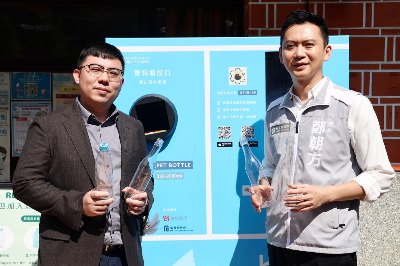 ▲竹北市公所與和全豐光電合作,推出寶特瓶回收換現金機器,還可以參加抽獎。(圖/竹北市公所提供)