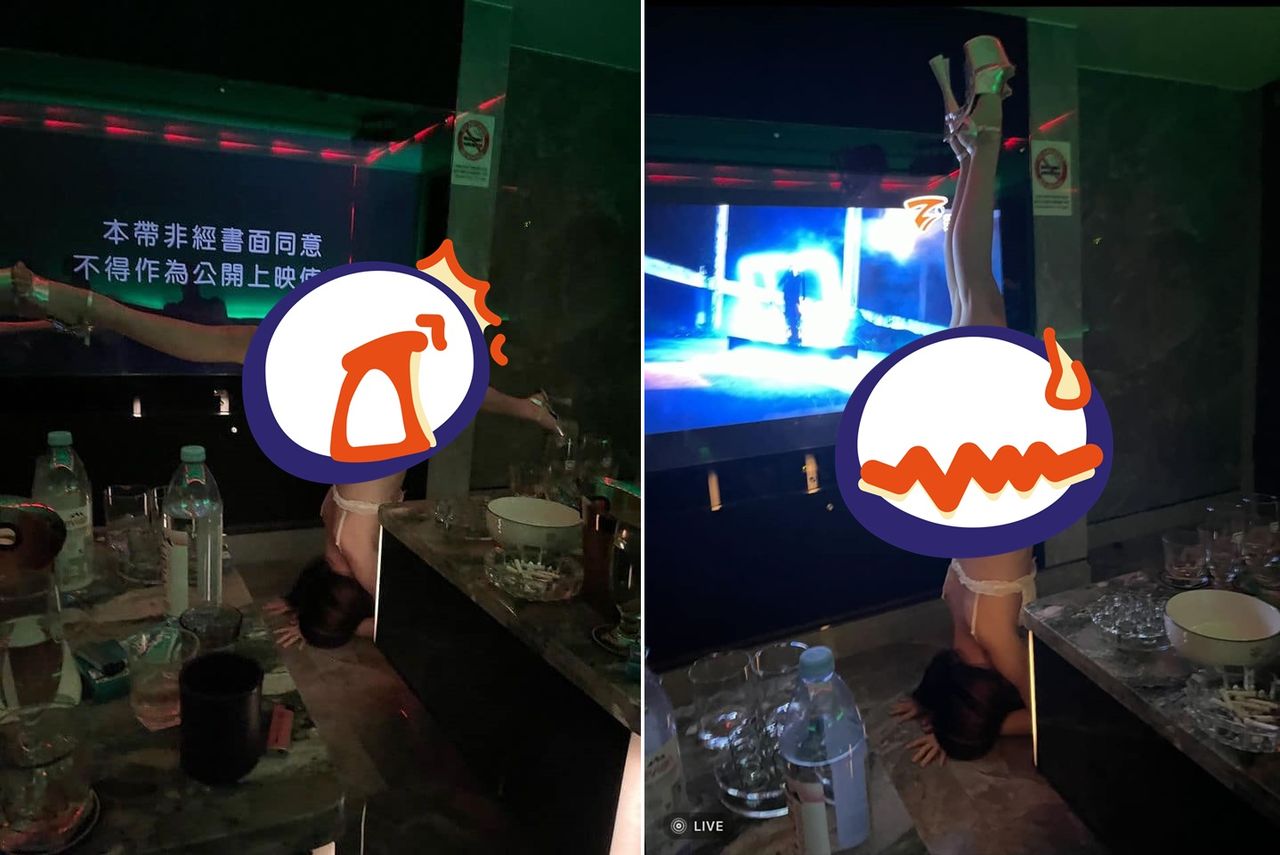 ▲一名酒店小姐在包廂內秀出倒立、空中一字馬等專業動作。(圖/翻攝自Facebook/爆廢公社二館)