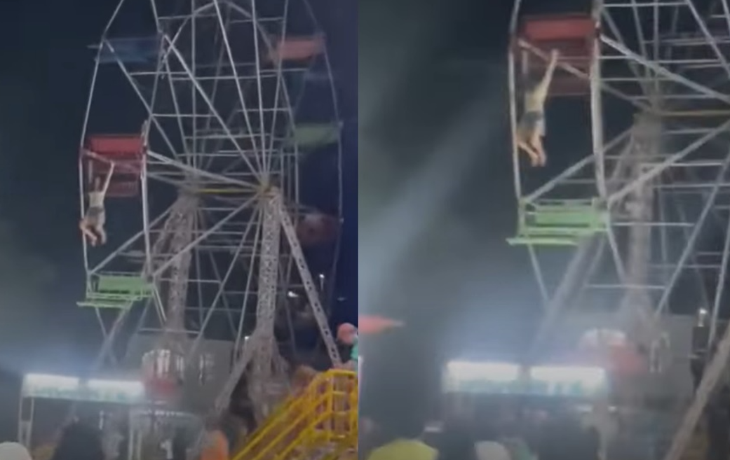 ▲女童被甩出摩天輪,懸吊在半空中。(圖/翻攝自YouTube)