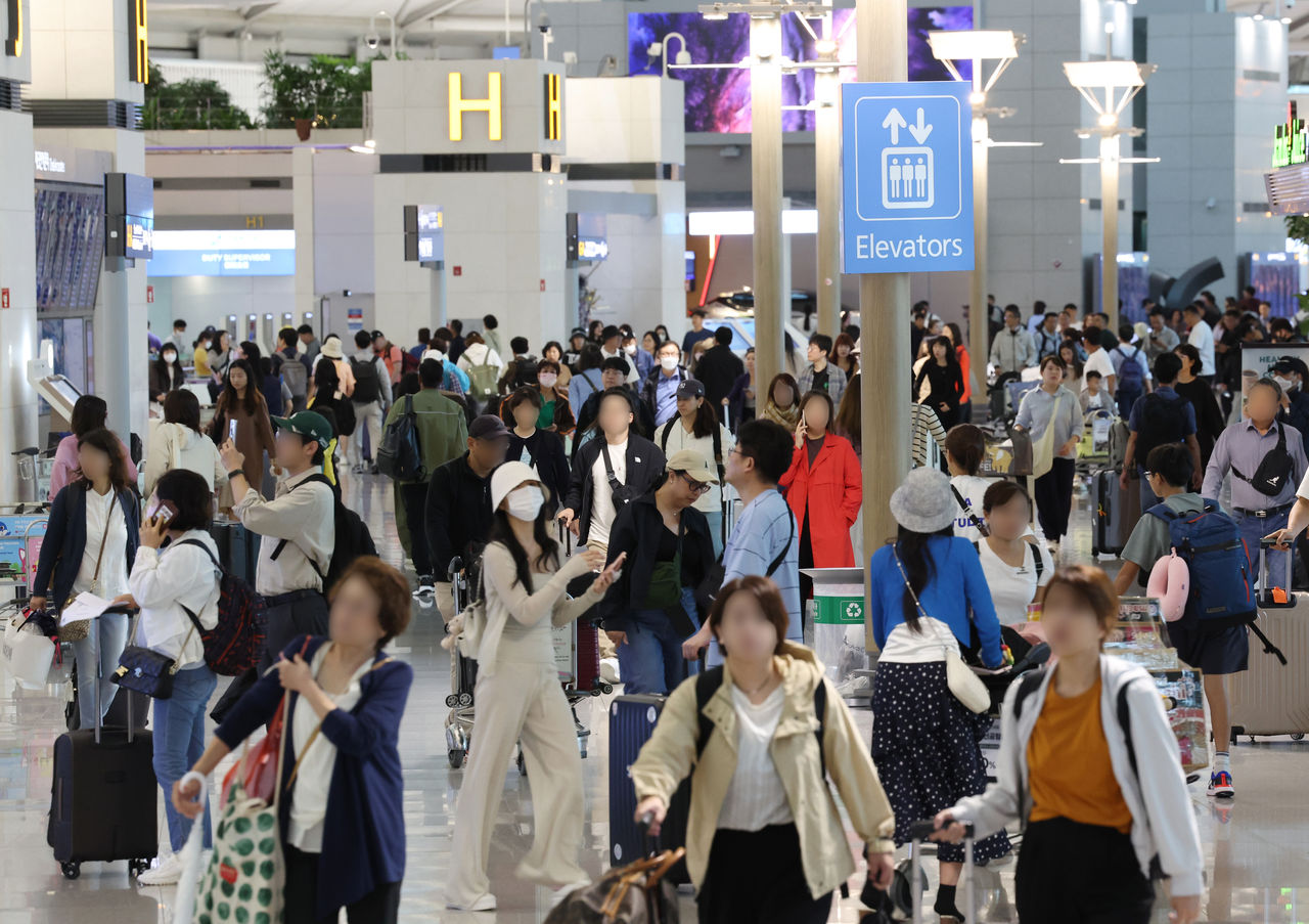 ▲今年9月底中秋節連假南韓仁川國際機場第一航廈的人潮。(圖/達志影像)