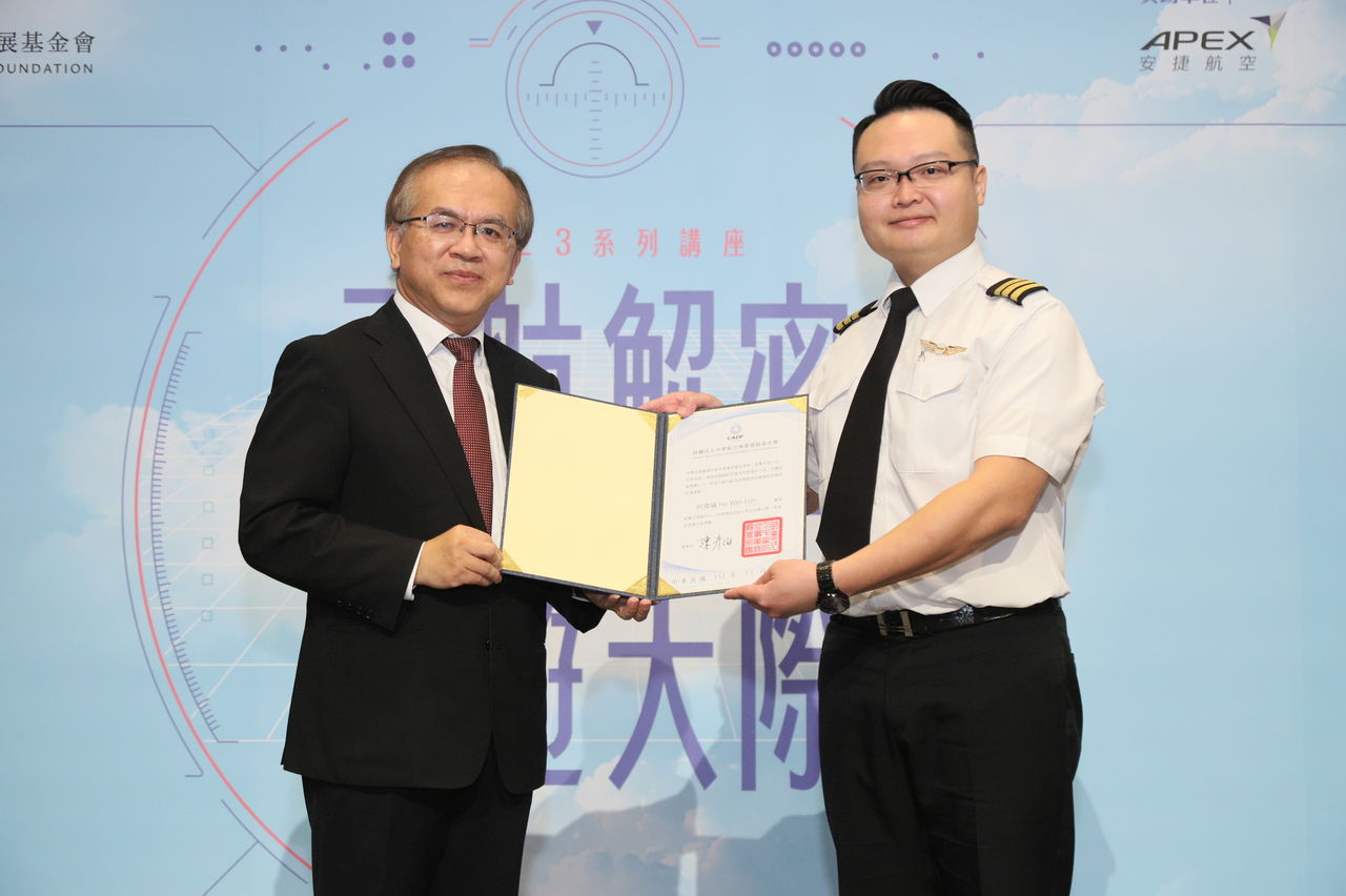 疫後航空產業強力復甦,航空市場前景看好,財團法人中華航空事業發展基金會(航發會)今天舉辦「飛航解密 暢遊天際」2023系列講座台北場。今年結合「國內航空器駕駛員訓練獎助金」頒獎典禮,共有五位自訓並考上國籍航空公司的駕駛員獲得補助。