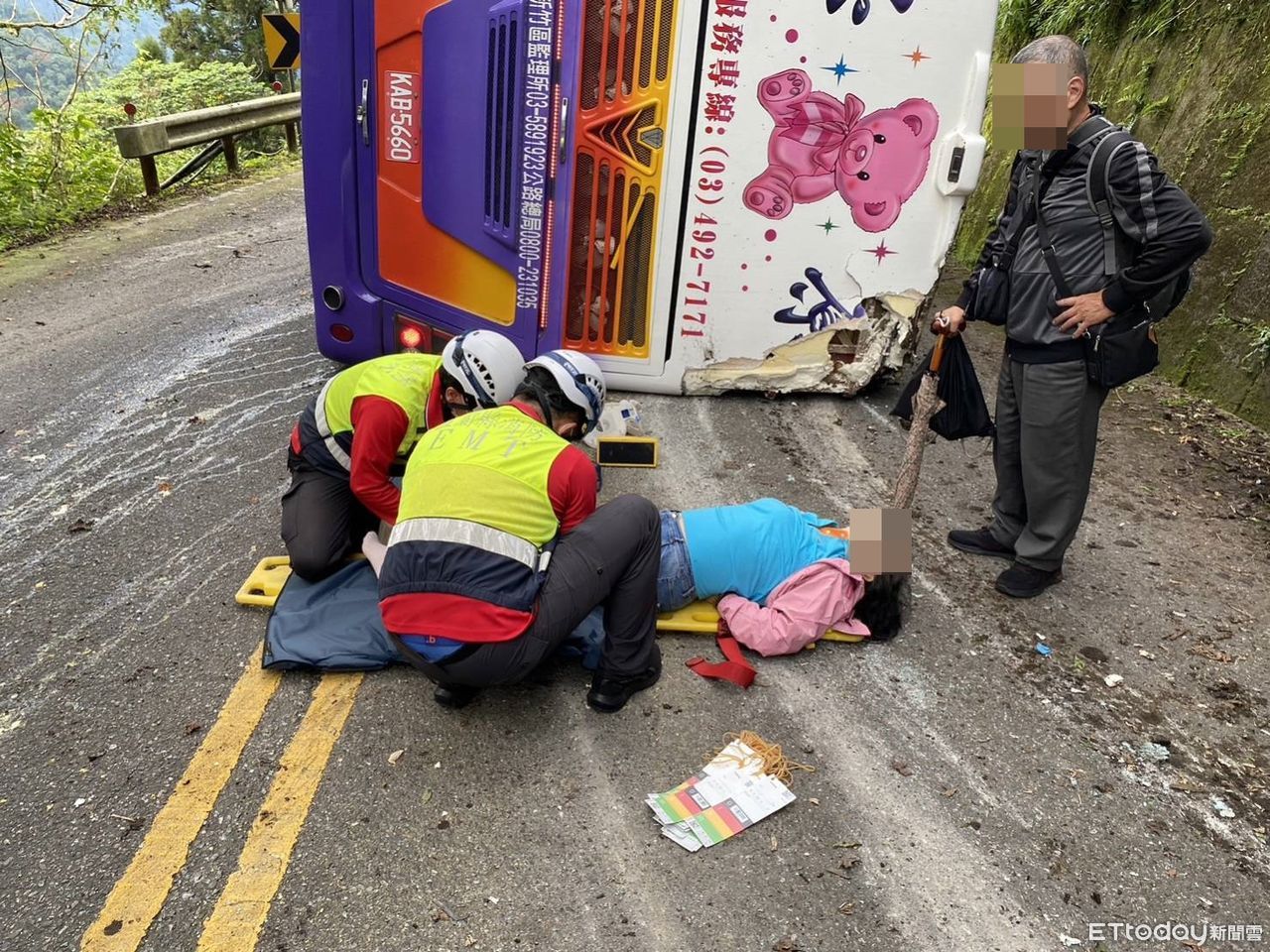 5日下午3點14分左右,一輛載著桃園市八德區廣德里40名環保志工的遊覽車,下山時煞車失控側覆,釀成1死39人輕重傷悲劇。