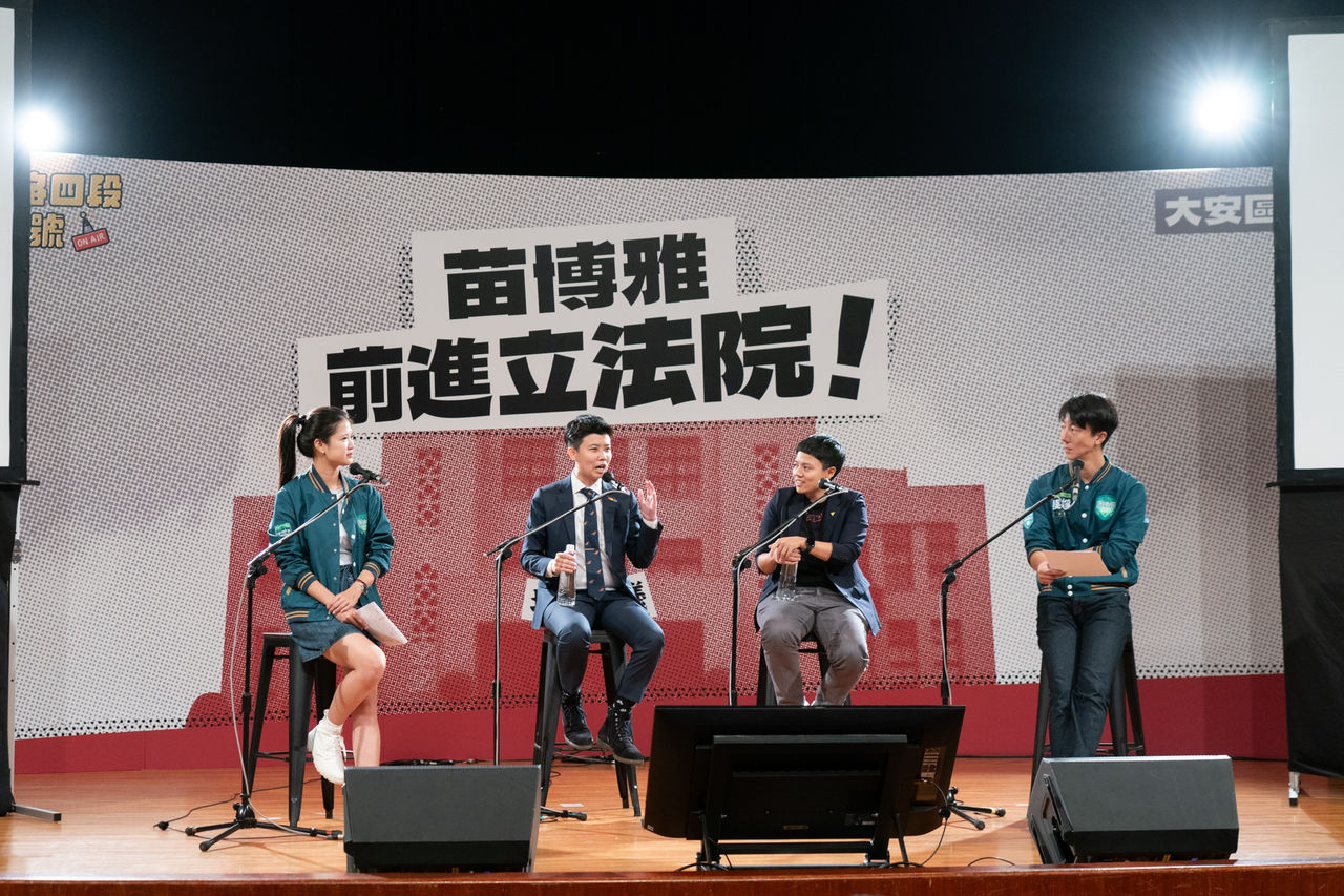 賴清德昨天晚間出席苗博雅競選總部成立大會,並參與由立委參選人苗博雅、吳崢、台北市議員林亮君所主持的Live Podcast「仁愛路四段507號」國際特輯,與特別嘉賓敏迪暢談國政。