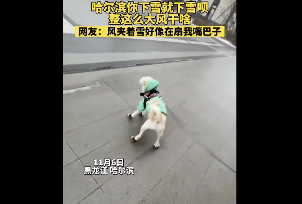 對於2023年入冬後首個劇烈的天氣變化,哈爾濱民眾不僅受到暴雪困擾,不時還夾帶著一陣陣的狂風,便有部分民眾拍下在路上「滑冰」的有趣畫面。