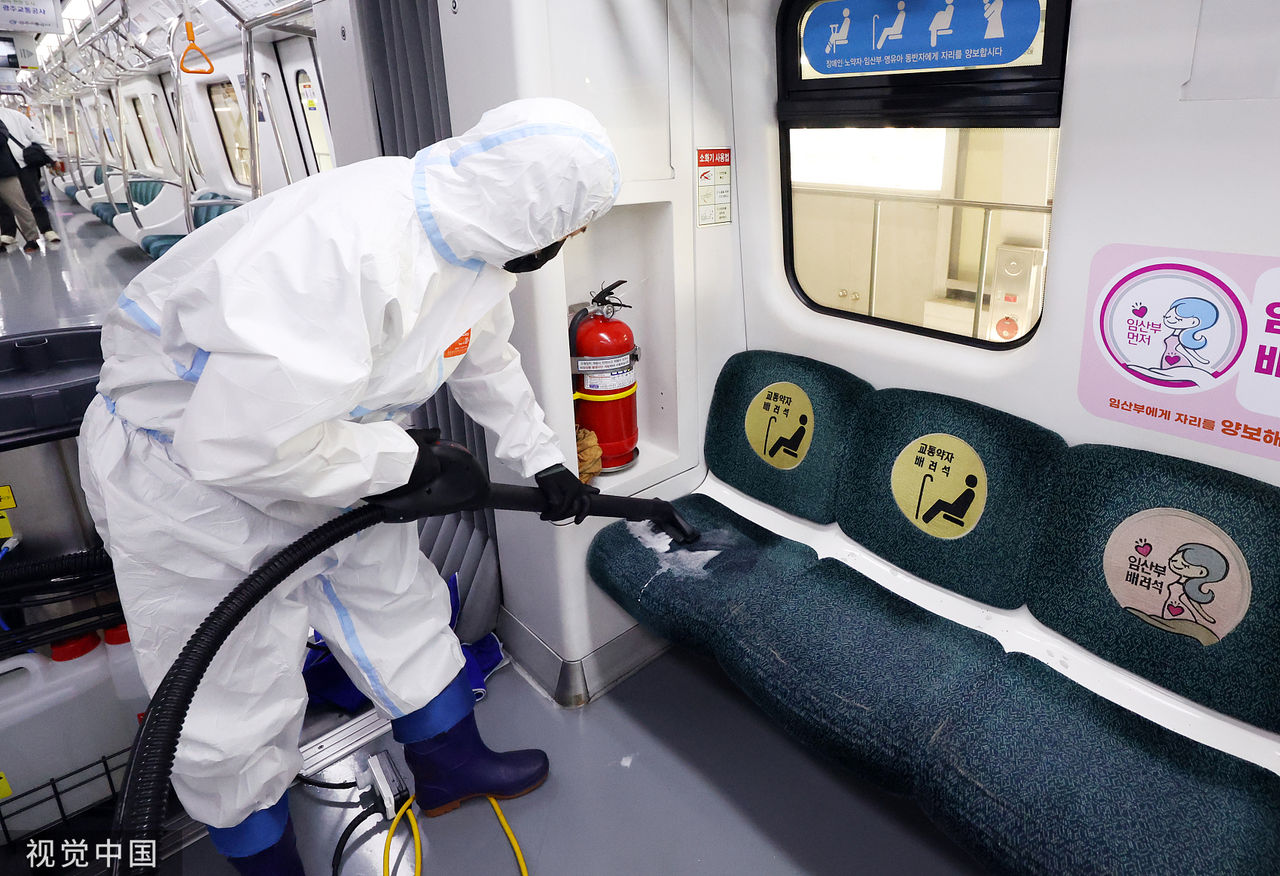 ▲南韓最近深受床蝨等蟲害所擾,光州地鐵派人員在車廂內進行消毒與滅蟲工作。(圖/CFP)