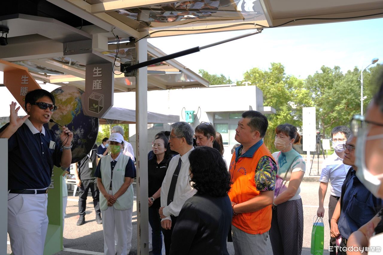 這輛環保教育車是慈濟基金會利用40呎貨櫃改造而成,結合淨零排放主題與多媒體互動設備,搭配氣候變遷、暖化危機及邁向淨零等主題,向觀眾介紹「碳匯、碳捕捉、碳運輸、碳再利用、碳封存」等觀念,即日起停放在園區至12日,觀眾可免費參觀。
