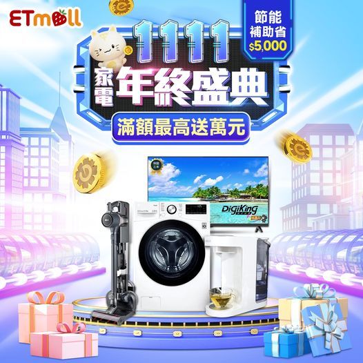 雙11購物節即將進入最高潮,趁著年度最殺促銷,消費者不妨鎖定高單價的家電、3C商品來賺一波,東森購物網ETmall推出「家電品牌年終盛典」,即日起至11/13止,消費滿額最高可得20,486樂透金,雙11當天最高可得30,486樂透金,購買洗衣機、家電回饋最高39%。