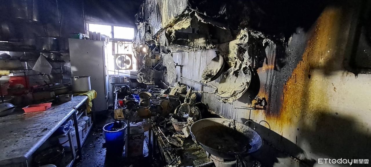 ▲▼梨山一家餐廳煮滷肉不慎失火,所幸助警器提醒,業者立即報案求救,廚房設備燒毀損失約10萬元。(圖/記者哈勇嘎奧翻攝,下同)