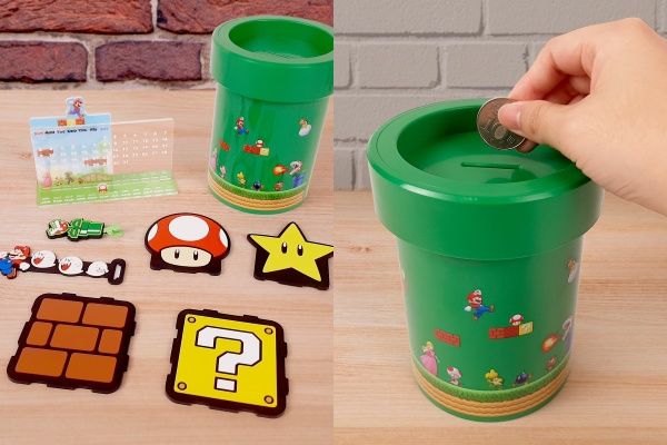 《超級瑪利歐》一番賞獎品有「A賞 時鐘」、「B賞 水管存錢筒」、「C賞 魷魚醬料罐」、「D賞 壓克力萬年曆」、「E賞 造型筷架/杯子/小碟子」、「F賞 收納包/毛巾」、「G賞 軟膠杯墊/髮夾/束帶」、「最後賞 管道存錢筒」。