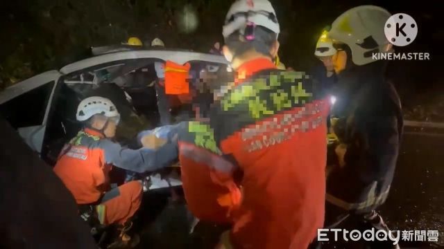 經搶救將59歲意識清楚,雙大腿開放性骨折的男駕駛救出,並送往博愛醫院醫治。