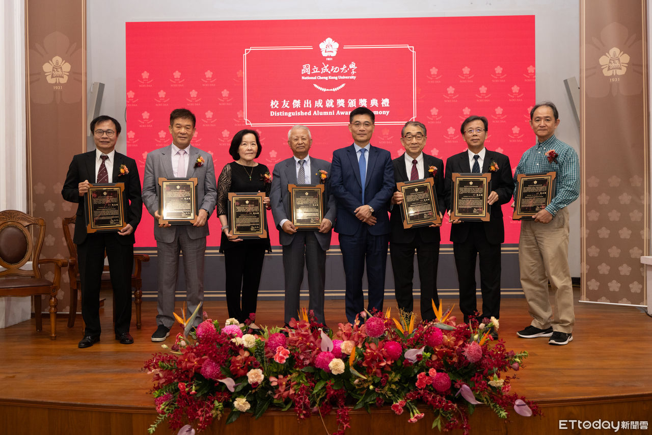 ▲成大校長沈孟儒頒獎表揚2023年7位傑出校友。(圖/記者林東良翻攝)