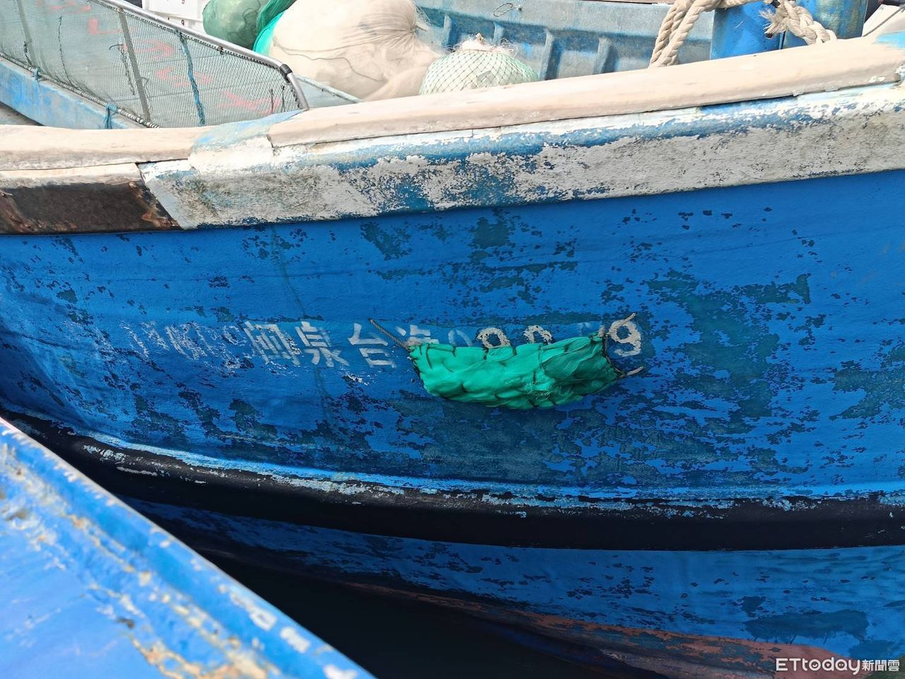 ▲陸船出港前刻意將船舶編號使用塑膠布遮蔽,企圖躲避查緝。(圖/記者林名揚翻攝)