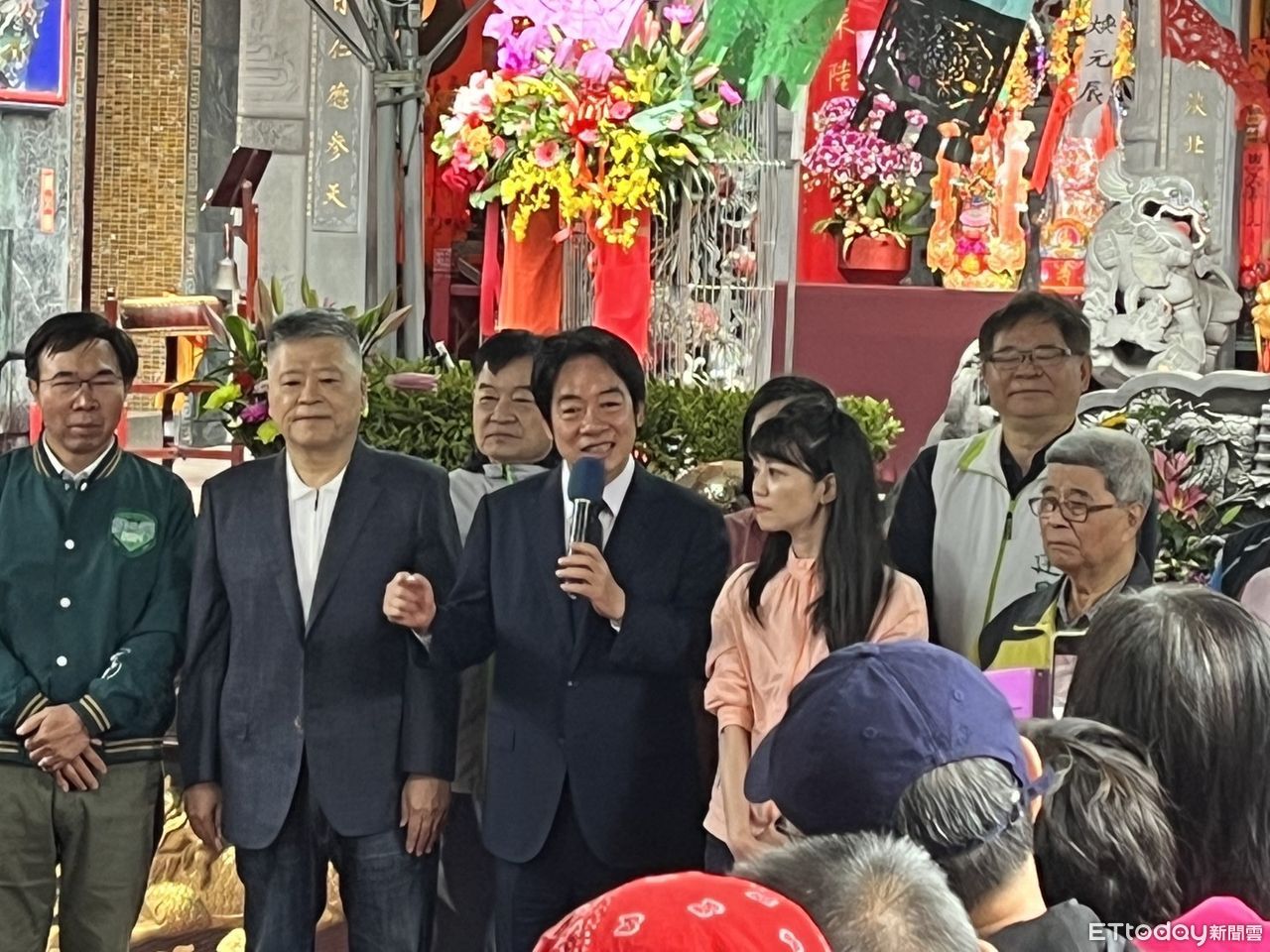 賴清德今天上午在民進黨立委高嘉瑜陪同下,前往內湖碧山巖開漳聖王廟禮斗法會參香祈福,並享用湯圓。