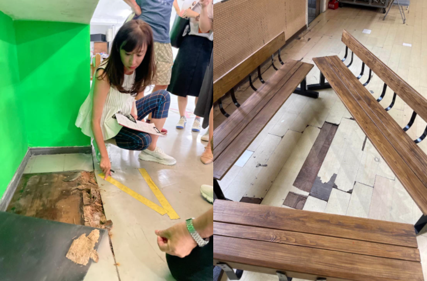 許淑華提到,剛質詢完的下午,她就立即收到敦化國小有學生因為活動中心沒錢改善,導致摔倒膝蓋撕裂傷縫3針;此外,信義國中的教室地板也一樣,想補破洞但沒有經費整體維修,一直臨時補丁,整個牆壁也因漏水導致壁癌嚴重,很難想像這是在首善之都台北市的學校。