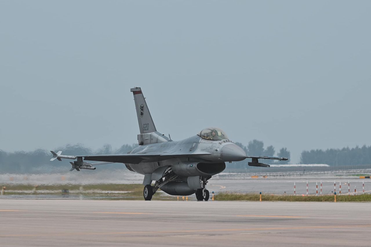 ▲新加坡F-16戰機14日故障迫降樟宜機場。(圖/翻攝自臉書/The Republic of Singapore Air Force)