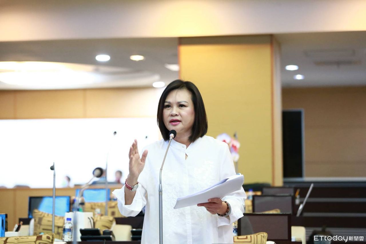 ▲台南市議員林燕祝質詢台南市肉品市場諸多問題,要求市長黃偉哲調查整頓。(圖/記者林東良翻攝)