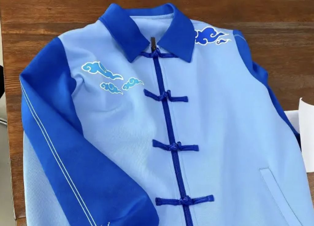 透過網傳校服照片可以發現,該款式採用漢服中國風式的設計,整體顏色為藍色,還印有祥雲圖案,並用拉鍊及盤扣組合,從外觀上看起來,確實和「壽衣」相似度極高。