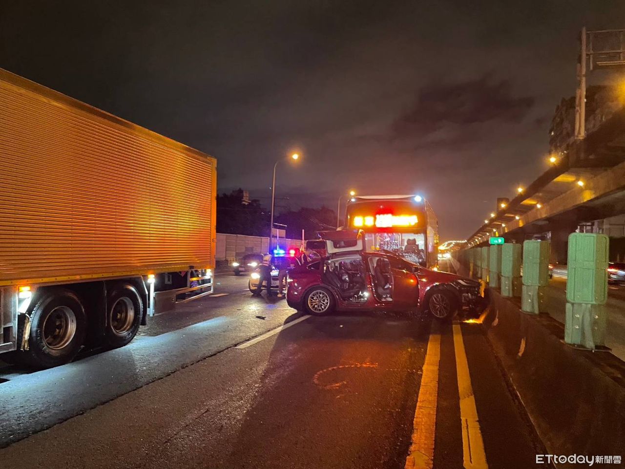 國道1號北向13.9公里、汐止高架路段15日晚間8點08分發生大客車、大貨車及特斯拉轎車追撞事故。警消趕到後發現,事故佔用內側、外側車道,僅剩2輔助車道可通行,事故共造成特斯拉35歲丁姓駕駛受傷,送醫後沒有生命危險。